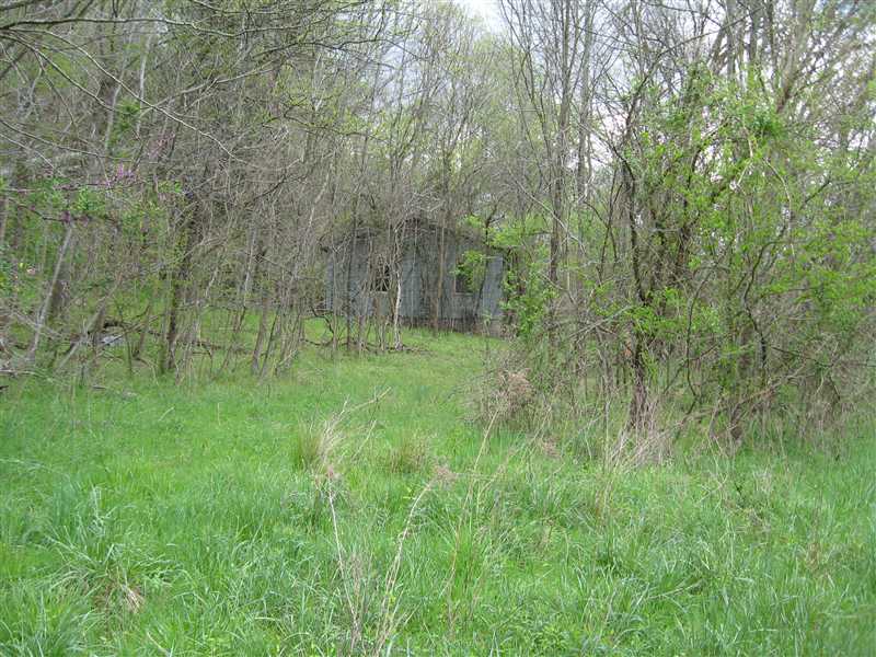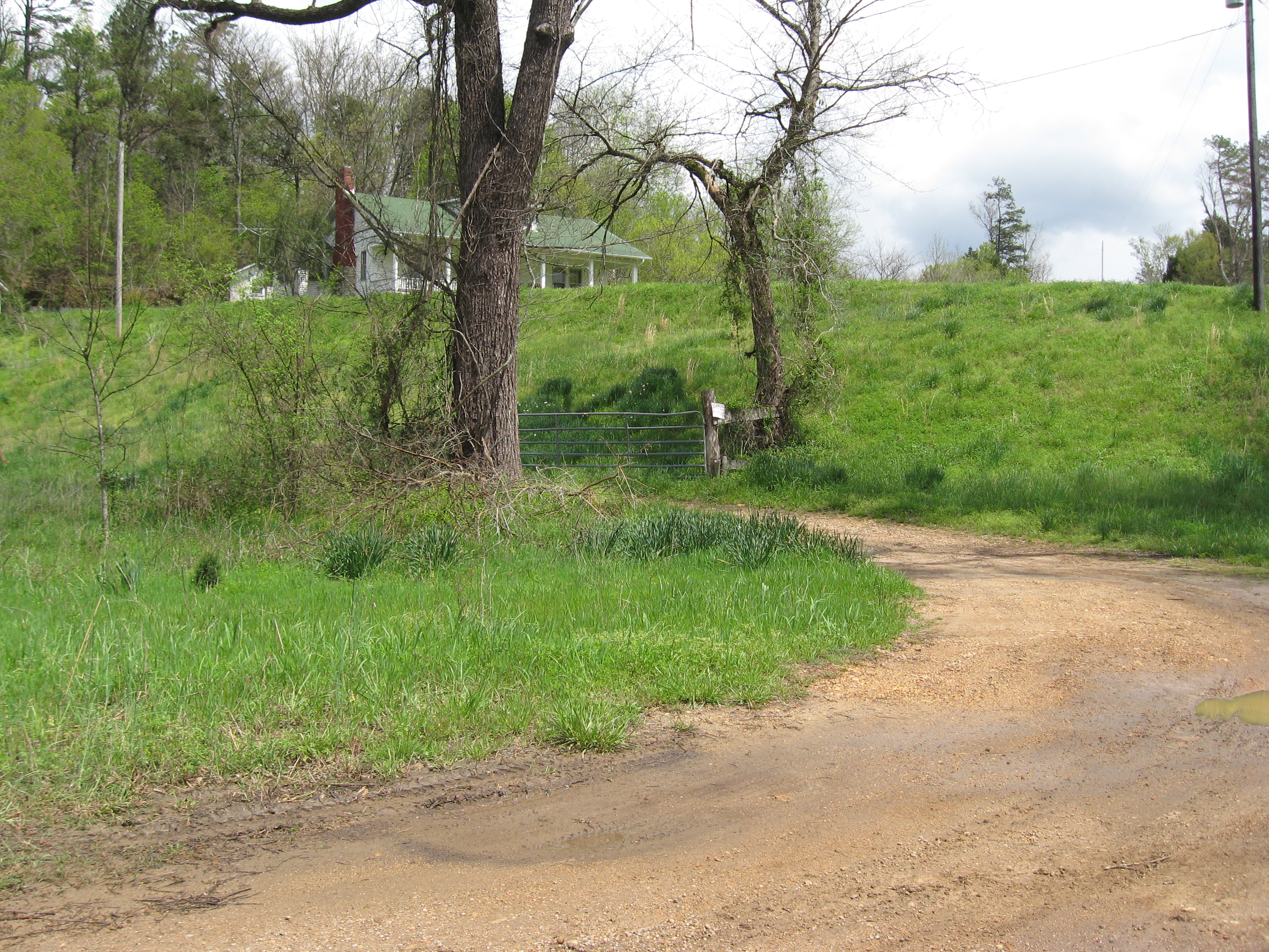 The old Harrison house next to the cemetery road at the base of the hill.