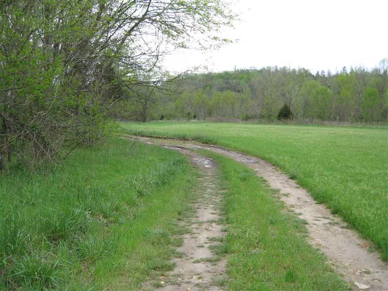 Road up the hill, cemetery somewhere around here